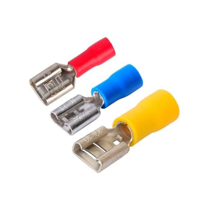 Os Terminais Fêmeas acoplam-se facilmente formando uma excelente conexão devido às travas e às bordas de encaixe deste ultimo. São pré-isolados, utilizados na terminação de condutores, com capa plástica para isolação na região da conexão do condutor com o terminal. Possuem alta condutibilidade elétrica e resistência a corrosão. Aplicados em painéis elétricos, ligações de motores, máquinas, quadros de distribuição elétrica dentre outras.