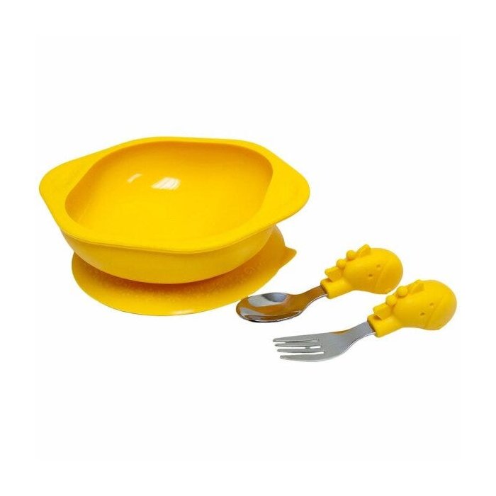 Kit Tigela Com Sucção Garfo E Colher Marcus & Marcus Girafa