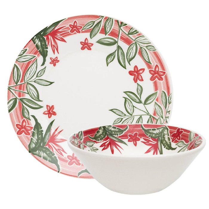 Kit Tigelas Bowl e Pratos de Sobremesa 24 Peças Biona jardim Tropical Oxford® Cerâmica -