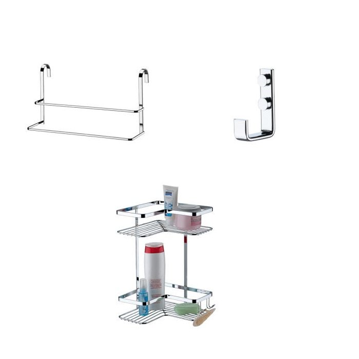 Kit Toalheiro Box 45cm + Gancho + Porta Shampoo Cantoneira