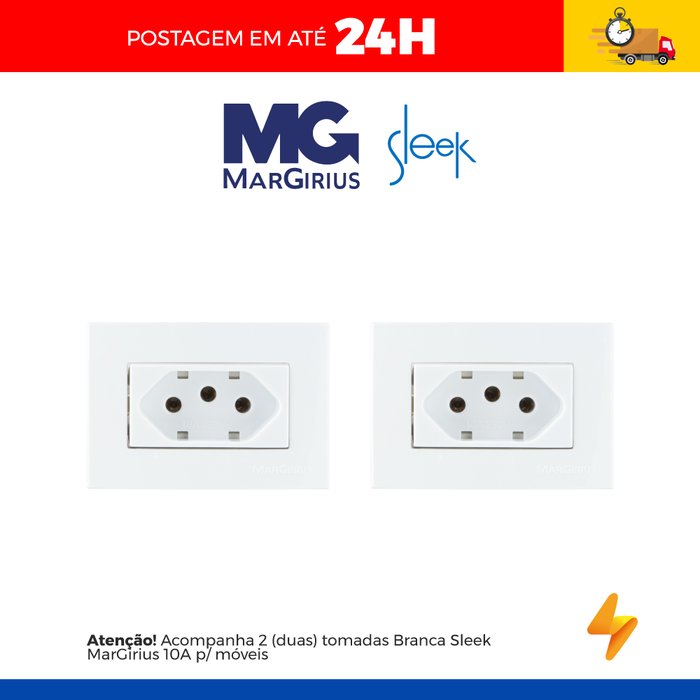 Kit Tomada e Interruptores para Móveis - Margirius Branco Brilho