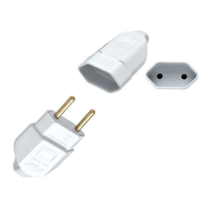 Kit Tomada Fêmea 2p 10A + Plugue Macho Maciço 2p 10A - Branco - 10 Plug Macho + 10 Tomada Fêmea