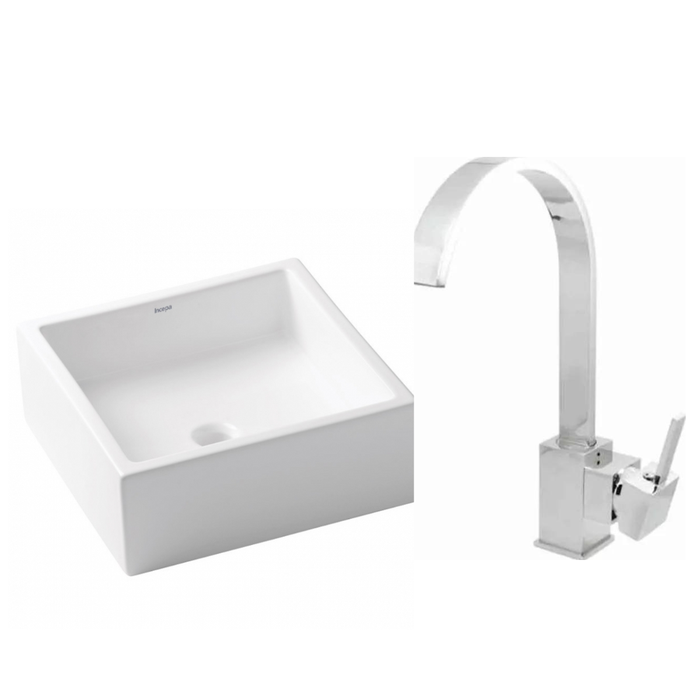 Kit Torneira misturador Monocomando Lavatório com Cuba de Apoio Quadrada
