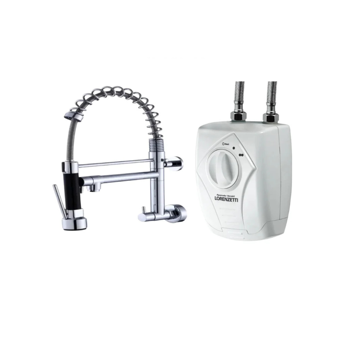 Kit Torneira Monocomando de Parede Cromada Cozinha + Aquecedor Lorenzetti Versátil 220V - Ideal para projetos modernos que valorizam eficiência e estética em ambientes residenciais.