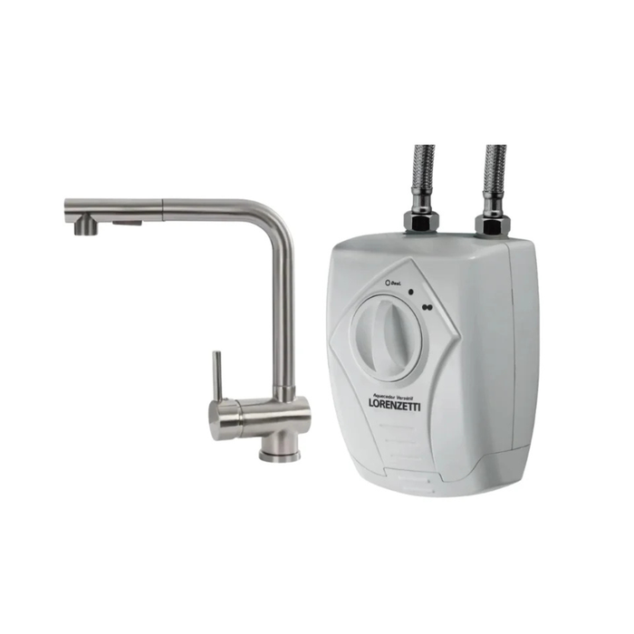 Kit Torneira Monocomando Escovada Prata Extensível + Aquecedor Lorenzetti Versátil 220V - Combinação elegante de torneira e aquecedor em um único sistema