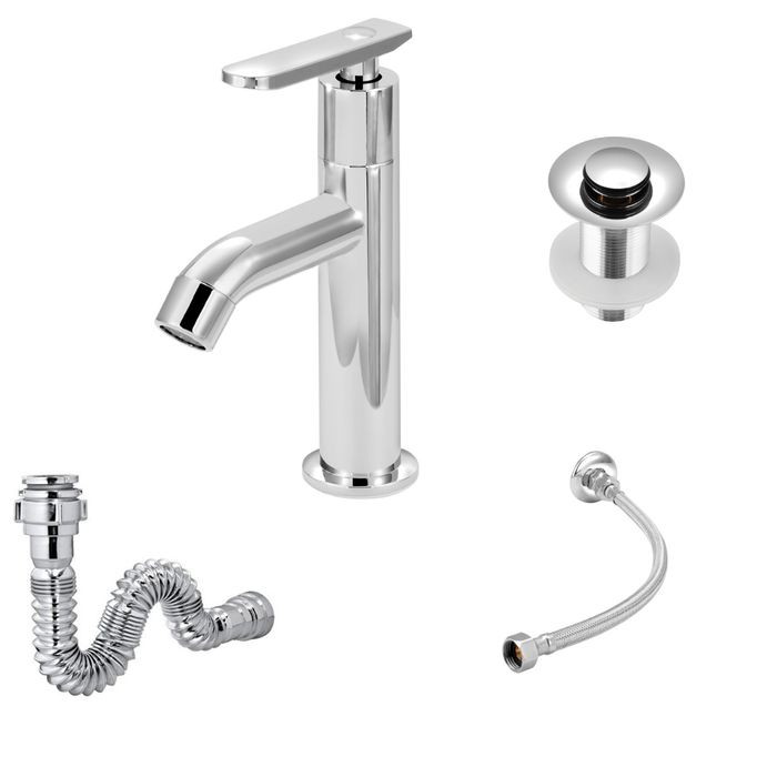 Kit Torneira Slim + Engate Flexível + Válvula Click + Sifão cromado