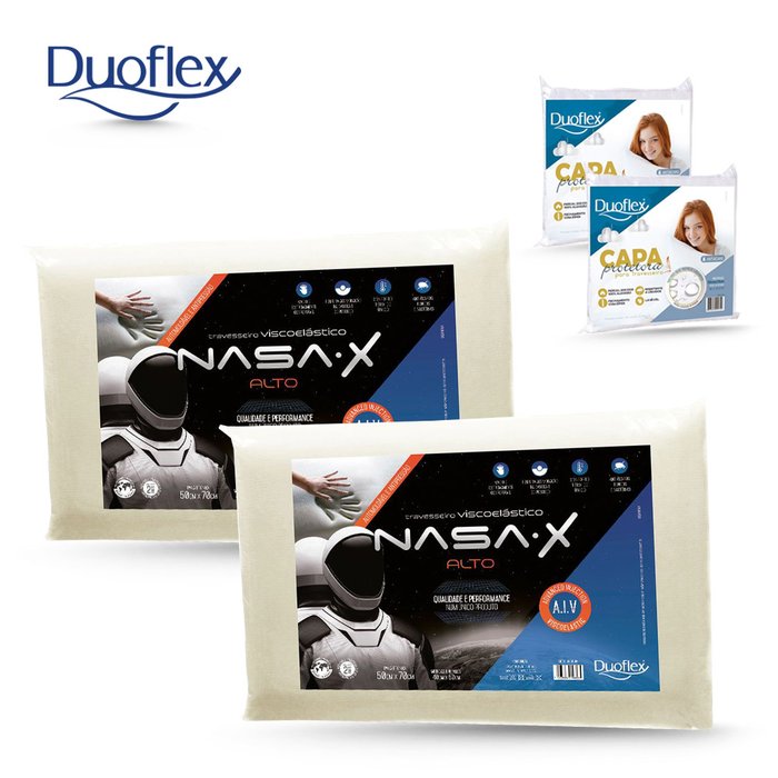 Kit Travesseiro Nasa X Alto Duoflex Mais Capa Protetora