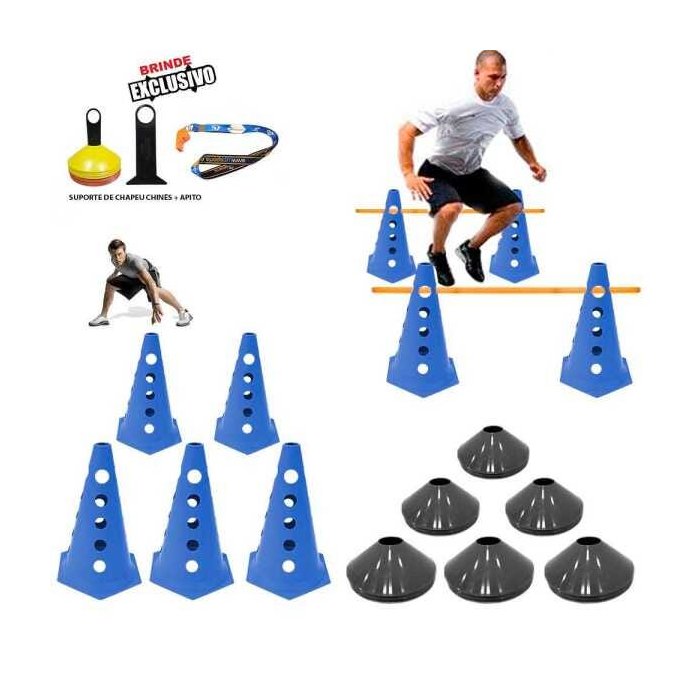 Kit Treinamento Funcional 10 Cone 10 Chapeu Kit 5 Barreiras s - Chápeu Preto - Cone Azu