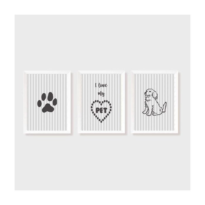 Kit Três Quadros I Love my PET (Cachorro) Branco