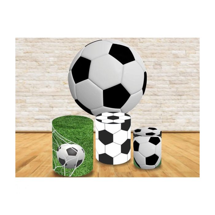 Kit Trio Capa Cilíndrica + Painel De Tecido Redondo Futebol campo e bola