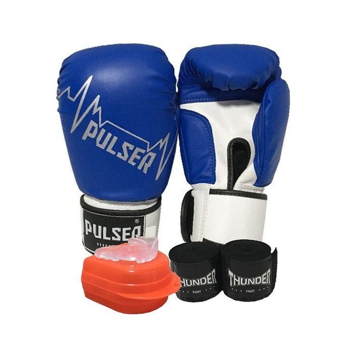 kit unissex Boxe / Muay Thai / Kickboxing - luva 10 oz azul + bandagem + protetor bucal - PULSER (