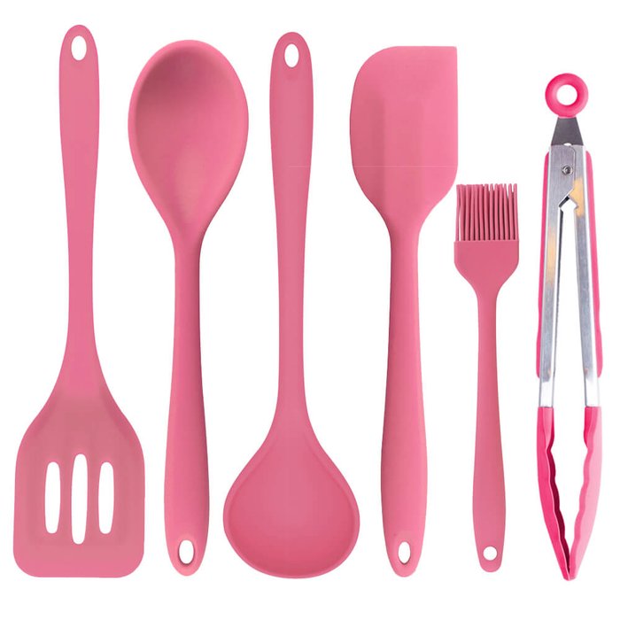 Kit Utensilio de Silicone Cozinha Rosa 6 Peças
