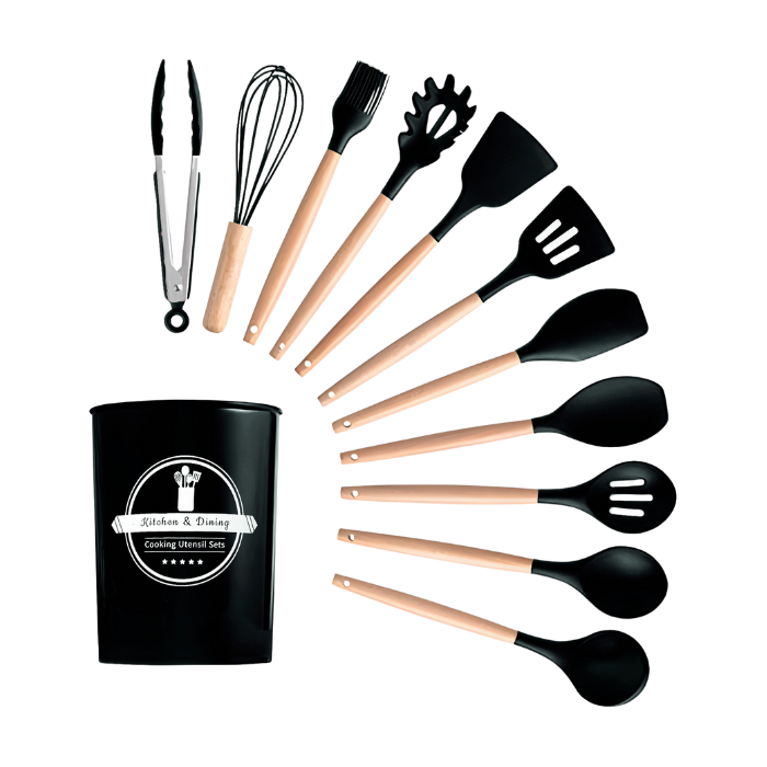 Kit Utensílios Cozinha 12 Peças Silicone Antiaderente Preto