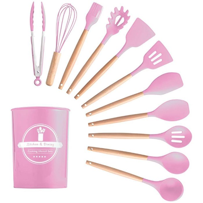 Kit Utensílios Cozinha 12 Peças Silicone Antiaderente (rosa)