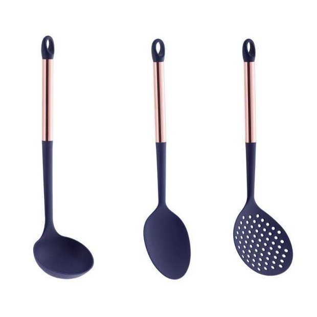 Kit Utensílios de Cozinha Paramount Cabo Inox Rose Gold Azul Marinho