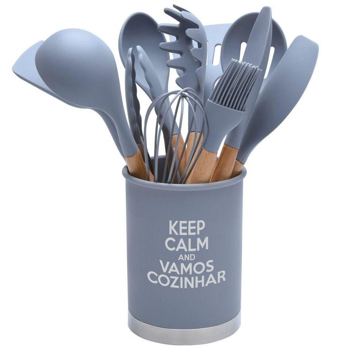 Kit Utensílios de Cozinha Silicone 13pçs Cinza