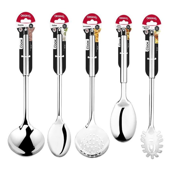 | Nome | Kit utensílios para cozinha 5 peças aço inox |