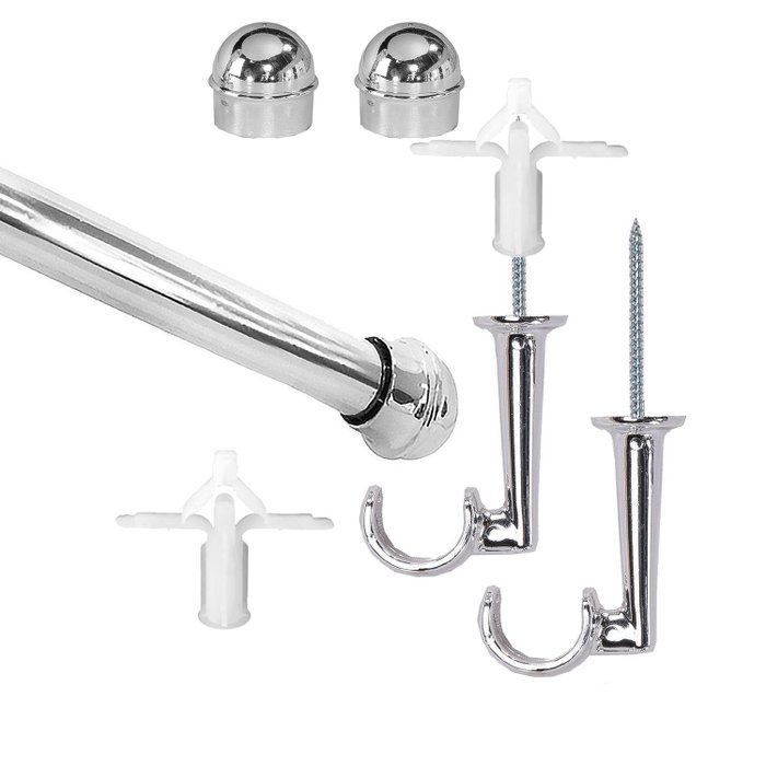 Kit varão de cortina para teto de Gesso ou Drywall resistente Leve cromado, em Alumínino
