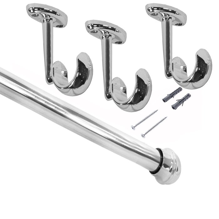 | Itens Inclusos | Contém: 1 Varão de 1,80 metros divididos em 2 partes de 0,90cm com 28mm de diâmetro 3 Suportes simples de Teto com 28mm Alumino Resistente Cromado 2 Ponteiras PVC cromada 1 Junção de 28mm com 10cm *Parafusos e buchas para fixação |