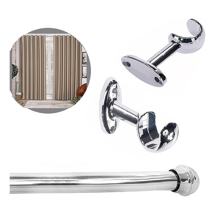 Kit Varão para Cortina 2 Metros Blackout Quarto Sala em Metal Resistente Decoribitinga Varão para Co Cromado