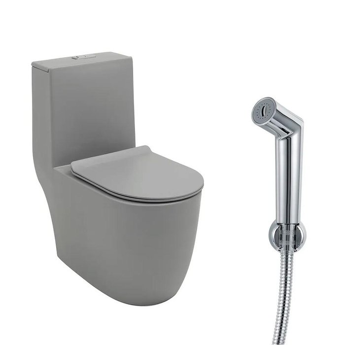 Kit Vaso Sanitário Monobloco Amazonita e Ducha Higiênica para Banheiro Apa - Cinza e Prata