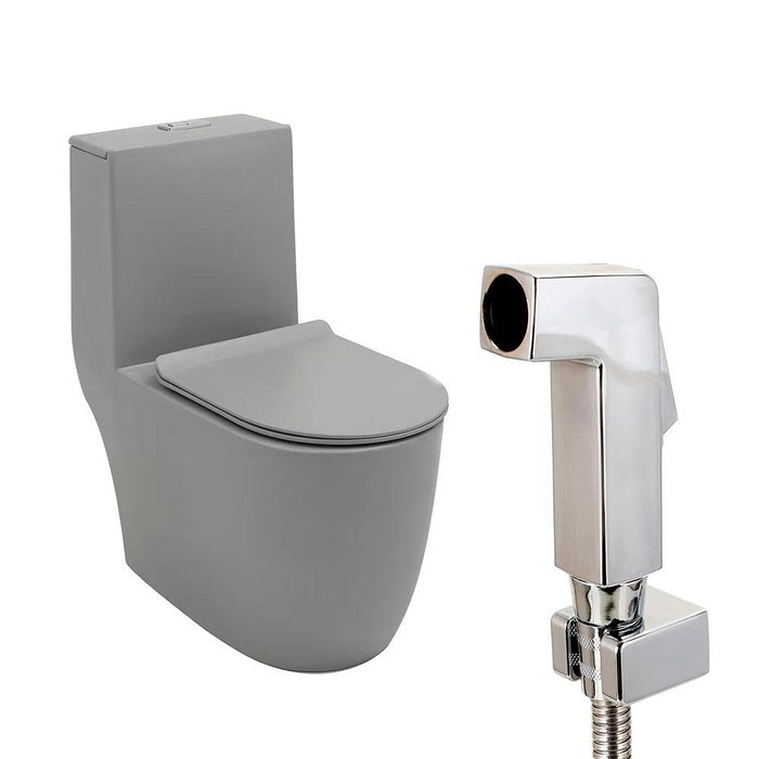 Kit Vaso Sanitário Monobloco Amazonita e Ducha Higiênica para Banheiro Jacuí - Cinza e Prata Prata