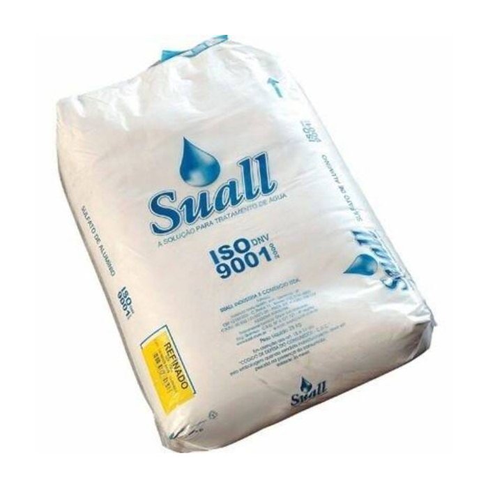Dissolva em um balde plástico com aproximadamente 10 litros de água a quantidade de Sulfato de Alumínio Suall recomendada: 40 gramas 1000 litros de água.
