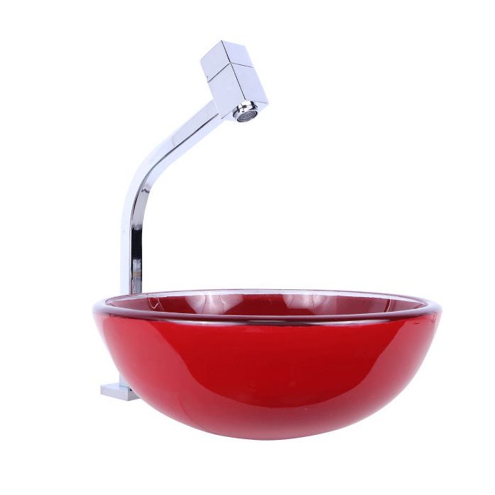 Kit Vermelho Cuba 30cm + Torneira Link Quadrada + Válvula