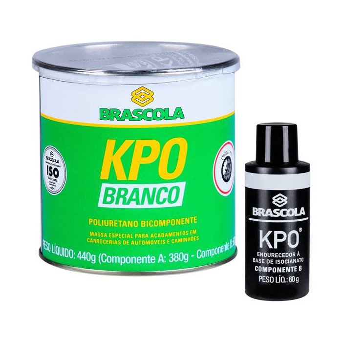 - Cor: Branco; - Peso Líquido: Componente A: 380G + Componente B: 60G; - Adesivo selante bicomponente à base de poliuretano. - A mistura dos componentes “A” e “B” resulta em uma massa viscosa, que não escorre mesmo aplicada em superfícies verticais. - Brascoved KPO é aderente às superfícies ferrosas adequadamente tratadas com primer ou fundo fosfatizado. - Foi especialmente desenvolvido para vedação e fixação permanente de chapas metálicas em carrocerias de automóveis e caminhões, emborrachamento original, reforço de capôs, calhas, soleiras e compartimentos de faróis. - Pode ser pintado 4 horas depois de aplicado.