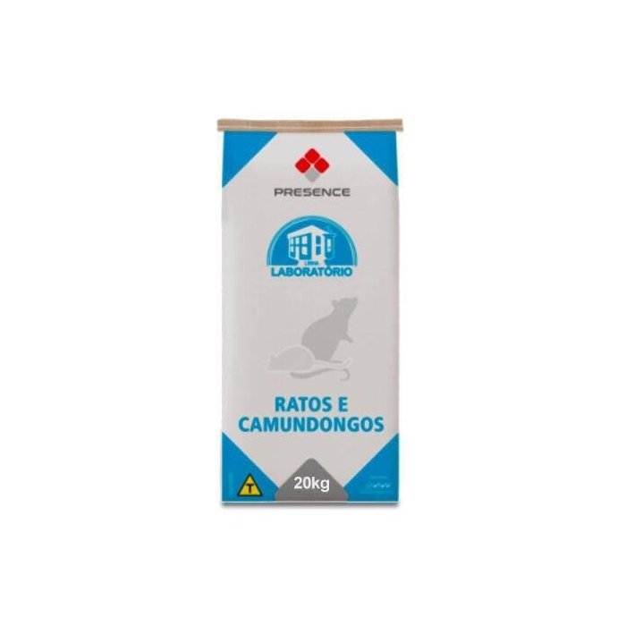 DESCRIÇÃO Ração Para Ratos E Camundongos 20kg - Presence Ração Completa e balanceada, indicada para Ratos e Camundongos em todas as fases de criação. É composto por ingredientes selecionados e de fornecedores credenciados, sendo um alimento seguro para ser usado nos animais de pesquisa. COMPOSIÇÃO Umidade (máx) 130,00 g/kg, Proteína bruta (mín) 230,00 g/kg, Extrato etéreo (mín) 45,00 g/kg, Fibra bruta (máx) 50,00 g/kg, Matéria mineral (máx) 100,00 g/kg, Cálcio (mín) 12,00 g/kg, Cálcio (máx) 13,00 g/kg, Fósforo (mín) 8.500,00 mg/kg, Sódio (mín) 2.700,00 mg/kg, Magnésio (mín) 500,00 mg/kg, Ferro (mín) 180,00 mg/kg, Cobre (mín) 30,00 mg/kg, Manganês (mín) 110,00 mg/kg, Zinco (mín) 110,00 mg/kg, Iodo (mín) 1,00 mg/kg, Cobalto (mín) 2,00 mg/kg, Selênio (mín) 0,20 mg/kg, Vitamina A (mín) 25.500,00 Ul/kg, Vitamina D3 (mín) 4.000,00 Ul/kg, Vitamina E (mín) 82,00 Ul/kg, Vitamina K3 (mín) 6,40 mg/kg, Vitamina B1 (mín) 11,00 mg/kg, Vitamina B2 (mín) 13,00 mg/kg, Biotina (mín) 0,16 mg/kg, Vitamina B12 (mín) 40,00 mcg/kg, Colina (mín) 2.500,00 mg/kg, Lisina (mín) 12,50 g/kg, Metionina (mín) 3.500,00 mg/kg Treonina (mín) 7.000,00 mg/kg. VÁLIDO POR 6 MESES