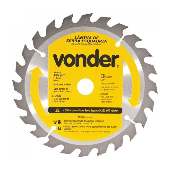 Lâmina de serra circular com dentes de metal duro/vídea 180 mm x 20 mm 24 dentes Vonder