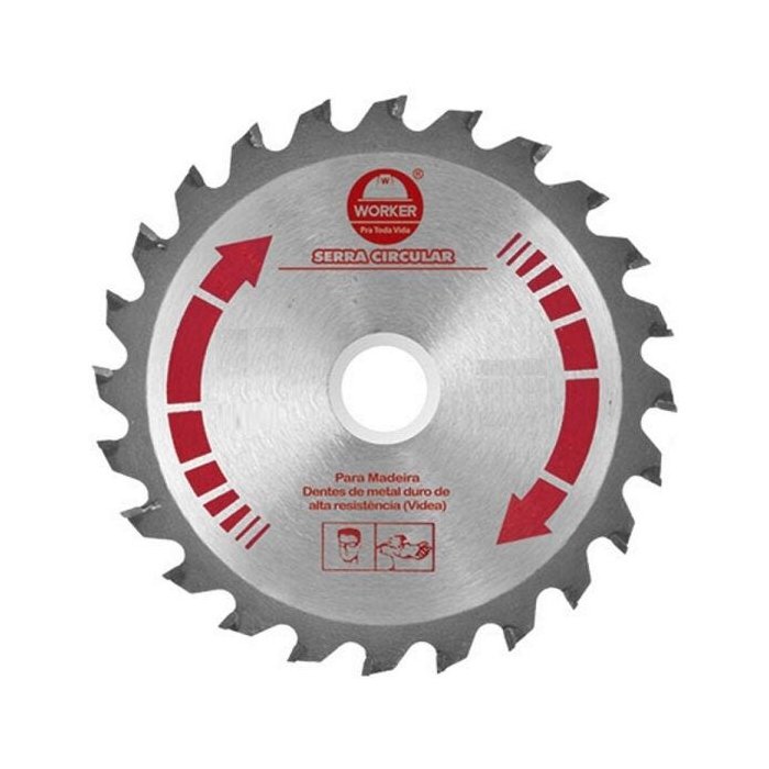 Lâmina de serra circular para madeira 40 dentes 185mm furo 20mm worker com dentes de metal duro vídea de alta resistencia. Indicado para maquinas portáteis. Características - Diametro: 185mm / 7.1/4" - Espessura do Disco: 1,5mm - Espessura do Corte: 2,6mm - Furo: 20mm - Dentes: 40 - RPM máxima: 7.200 - Dentes de metal duro de alta resistência (vídea)