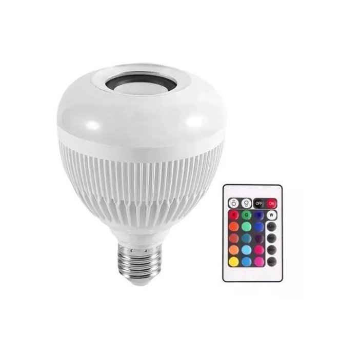 Nova Lâmpada bulbo 12W de Potência que toca música e ainda tem controle remoto com 24 funções e 16 cores.