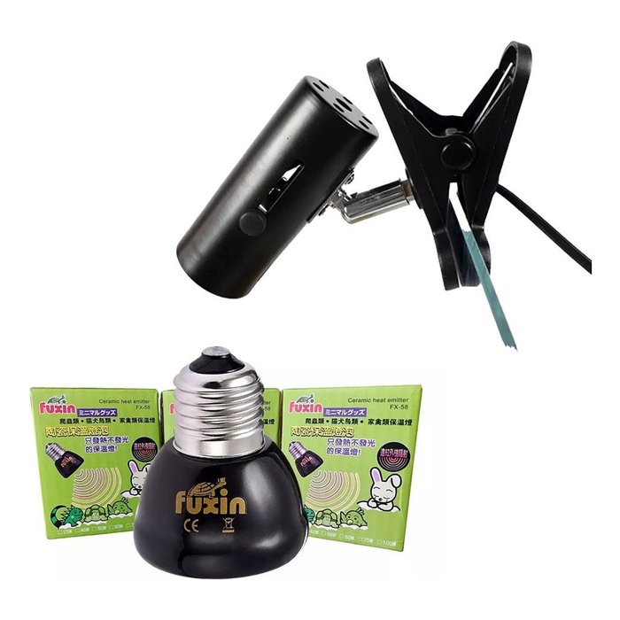 Lâmpada Fuxin Cerâmica Aquecedor + Luminária Nomoy Pet Clip