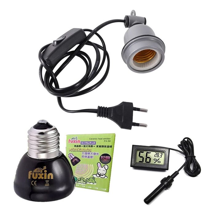 Lâmpada Fuxin Cerâmica + Soquete Ceramica + Termo Higrometro