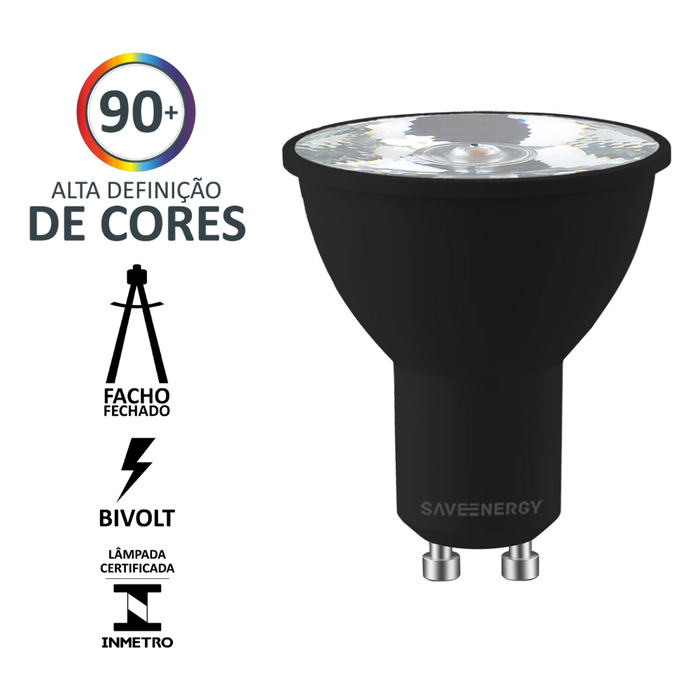 Lâmpada LED MR16 Alto IRC R9 GU10 6,5W 2700k 10° 350lm 4100cd Black Edition - Save Energy