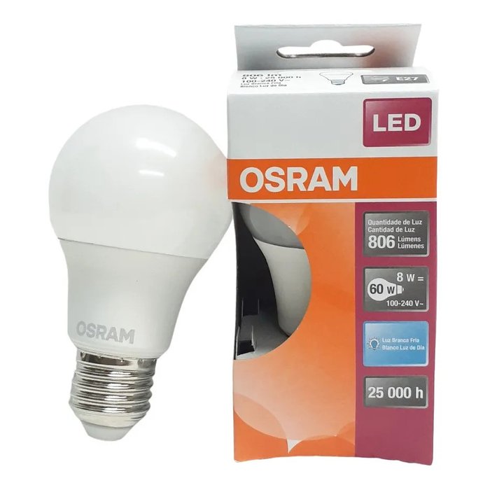 Lâmpada Led Osram 8w 6500k Bivolt Luz Branca Bulbo