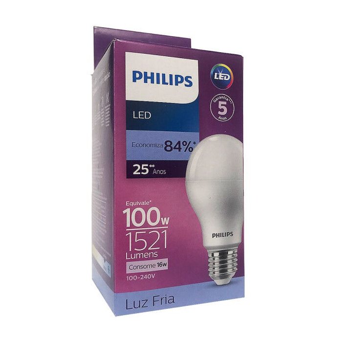 Lâmpada Led Philips Bulbo 16w 1521lm E27 Bivolt Equivale 100w: Branco Frio