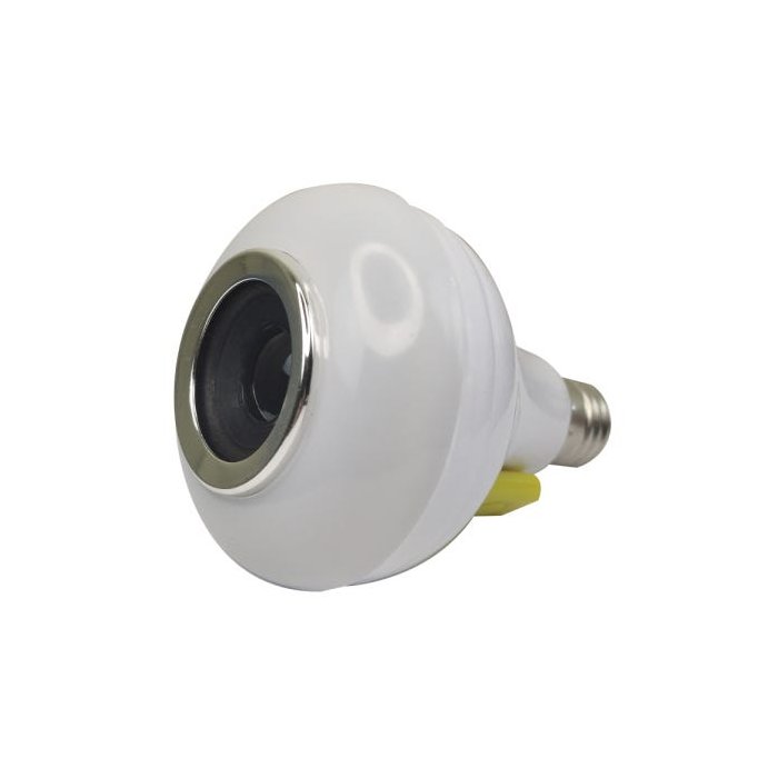 Lampada Led Musical Residencial. Conta com uma caixa de som de 3RMS, podendo ser controlada por seu controle, que é incluso, ou direto no seu celular no modo usb. A lampada possui entrada usb para pendrives.