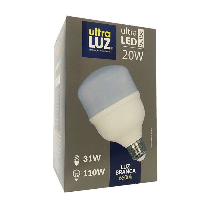 A lâmpada Ultra Luz 20w 1827lm equivale a uma incandescente de 110w e fluorescente de 31w.