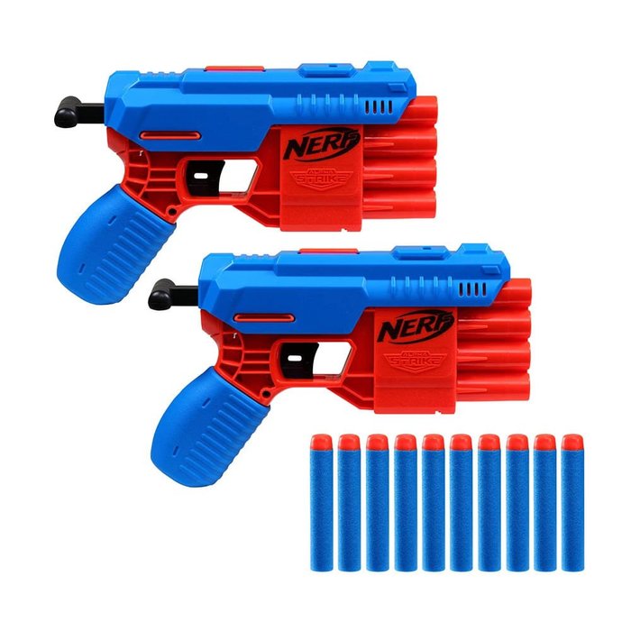 Chegou o Lança Dardos Nerf Alpha Strike Claw Dual para garantir a diversão da criançada! Com ótima potência e performance, o conjunt o inclui 2 lançadores, para que dois jogadores possam facilmente brincar na aventura Nerf. Os lançadores são fáceis de carregar, pre parar e lançar em 3 passos. Inclui 10 dardos oficiais Nerf Elite, testados e aprovados para performance e qualidade, feitos de espum a e com ponta flexível. Não requer pilhas.Brincar e aprenderA brincadeira é fundamental para o desenvolvimento das c rianças. Dessa forma, ela aprende a se comunicar, desenvolve a criatividade, imaginação, além de diversas habilidades. É uma importa nte porta de entrada para a descoberta de sensações e sentimentos, e os brinquedos e bonecas, como o Lança Dardos Nerf Alpha Strike Claw Dual, tem um papel significativo nesse processo.