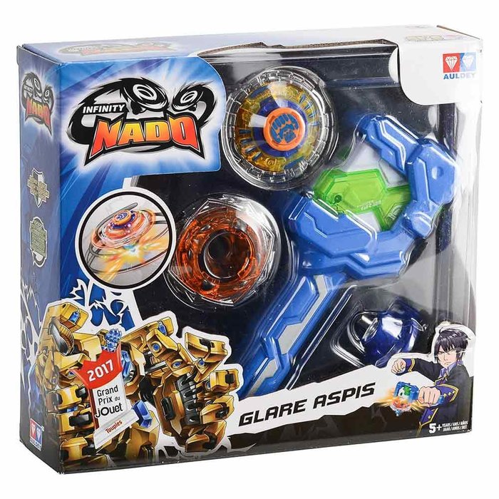Ative seu Infinity Nado Glare Aspis - Candide e lute por justiça e amizade! Glare Aspis é o personagem principal de Inifinity Nado e está preparado para lutar. Seu pião vem com anel de ataque de metal e pode ser montado com acessórios para se tornar um Pião de Batalha ainda mais poderoso.