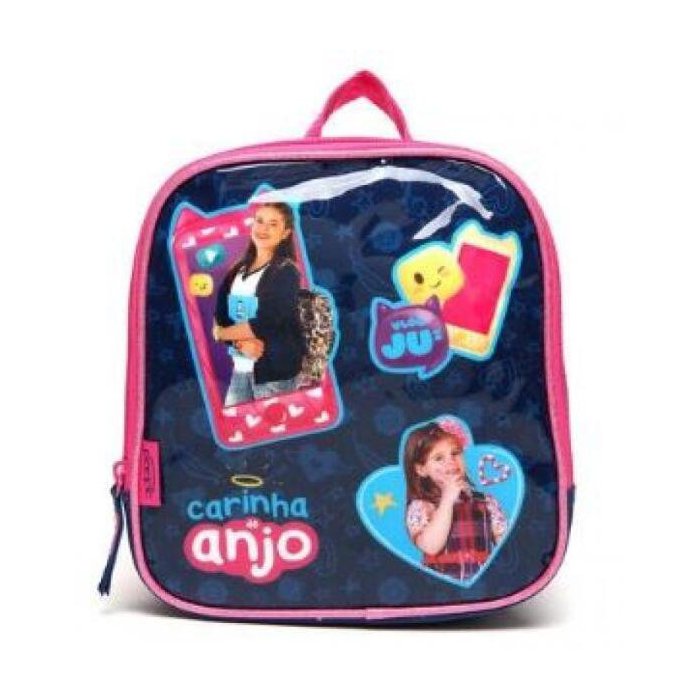 Lancheira carinha de anjo amor diversas u - 974a11005u Lancheira pacific carinha de anjo azul/rosa tipo de produto: lancheira material externo: sintético material interno: sintético fecho: zíper Kit Mochila de carrinho Carinha de Anjo e Lancheira , da Pacific do Brasil, coleção confeccionada em poliéster, painel frontal em PVC estampado e puxadores, compartimento principal com fechamento em ziper, 2 bolsos laterais de rede e 1 bolso frontal com fechamento em zíper. Orelhinhas de gato em plush aplicadas no topo da mochila. Mochila de carrinho Referência: 974A01005G Largura: 30 cm Altura: 47 cm Profundidade: 14 cm Lancheira Referência: 974A11005U Largura: 20 cm Altura: 22 cm Profundidade: 09 cm