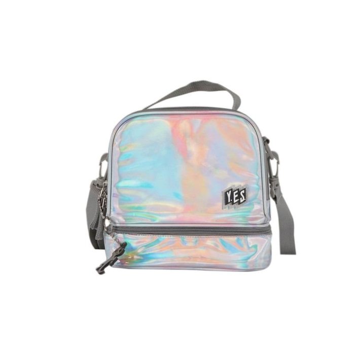 Lancheira com Alça e 2 Compartimentos Holográfica - Yes - Prata