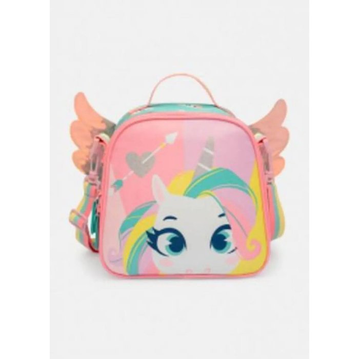 Lancheira Menina Térmica Uni Love Asas Puket com estampa corrida com glitter.