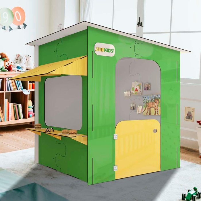 Lanchonete De Brinquedo Pequena Com Led 100% MDF Sub Kids Jennings Shop Jm Verde Amarelo