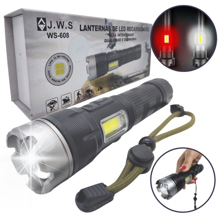 | Modelo | Lanterna Tática Militar Recarregável Profissional - Super Potente Led P90 - Caça, Pesca, Camping, Trilhas Noturnas - WS-608 JWS |