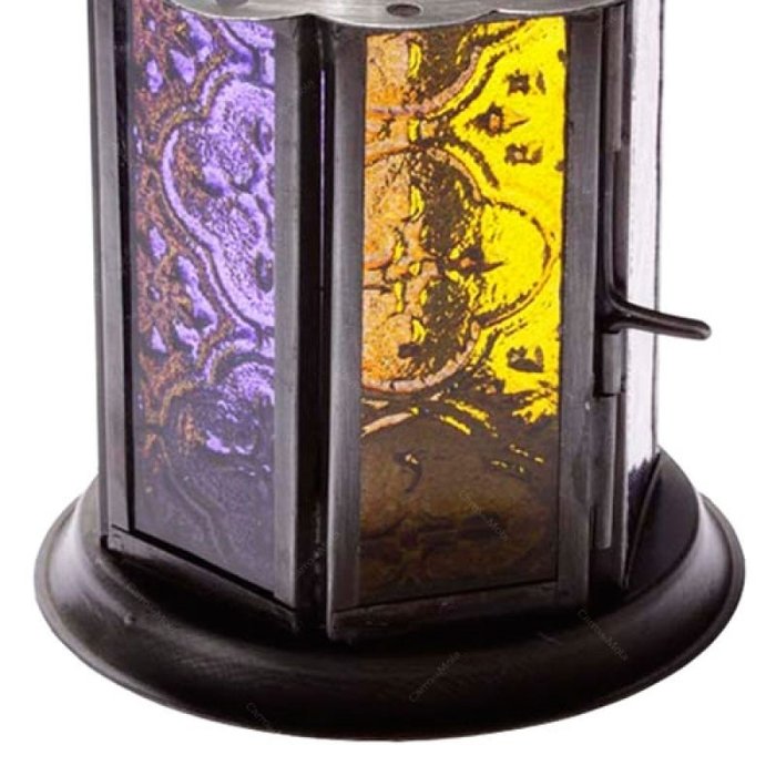 Lanterna Amarelo e Roxo em Metal e Vidro - 12x8,5 cm