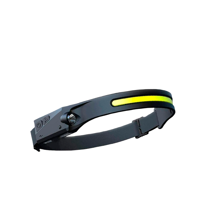 A lanterna de cabeça possui sensor omnidirecional, com lâmpada COB LED de alta eficiência e XPE LIGHT, contendo 7 modos de energia comutados por um botão e/ou sensor de movimento, as luzes do diodo emissor de luz possuem 350 lumens supor forte na cor branca e podem iluminar até 230 graus e até 50 metros de distância. Possui carregamento USB tipo-c (incluído) e extensível com tampa de lâmpada de silicone ajustável para qualquer tamanho de cabeça.