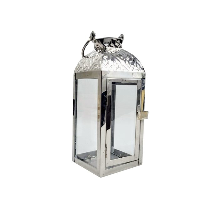Lanterna Decorativa Marroquina Prata Inox 25x10cm P